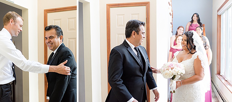 Ben getting the Father of the Bride in just the right position for the perfect first look between the Bride and her dad.