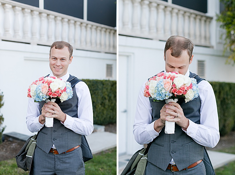 My bouquet and purse holding assistant/cutie of a husband 🙂