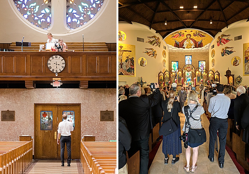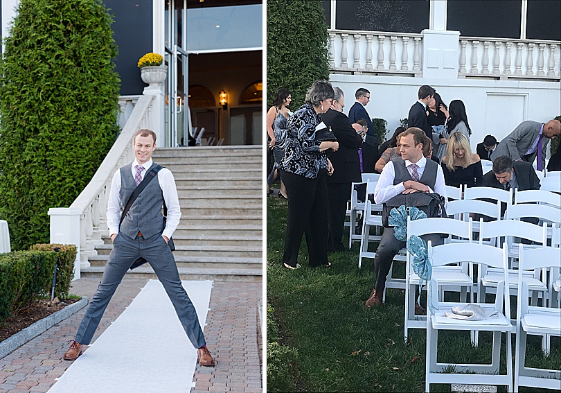 Testing the light with Ben for when Alyssa would walk down the aisle (but not stepping on the aisle runner) and Ben saving a seat for one of my photographers to get James’s reaction.