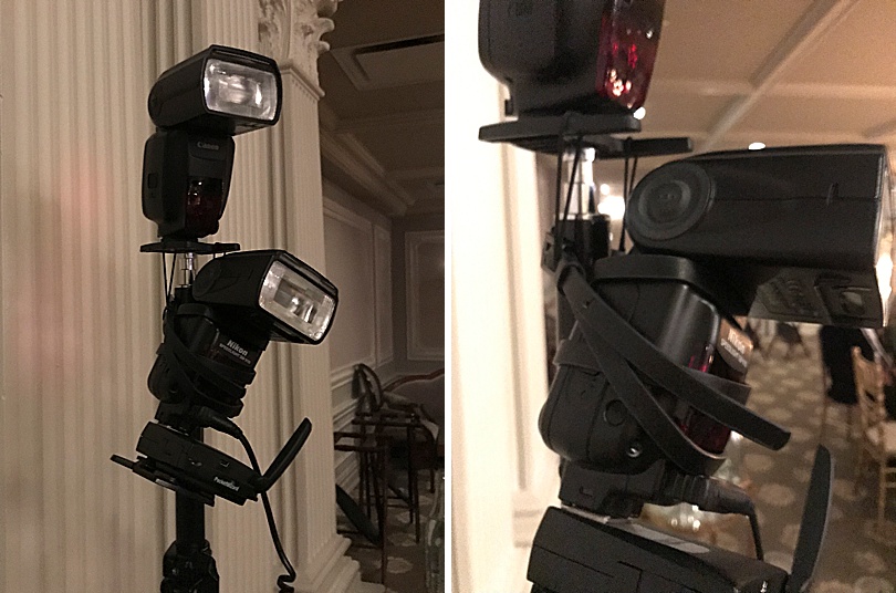 I’m pretty proud of my engineering in this photo. I was helping another photographer and I didn’t expect to stay for the reception so I hadn’t brought my light stand. I used a belt and a hair tie to hang my flash off of her’s!