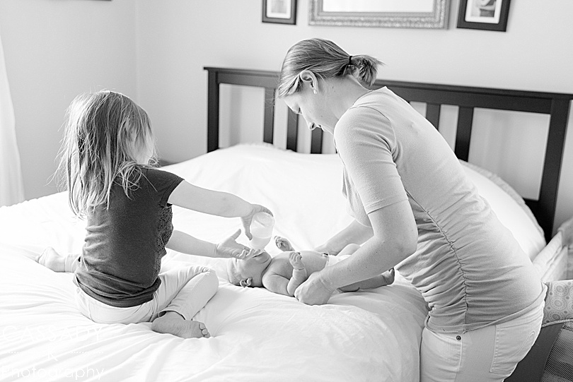 I alway love getting some everyday life photos during newborn sessions as well. Hailey, their oldest, loved helping Laura and feeding Evy.