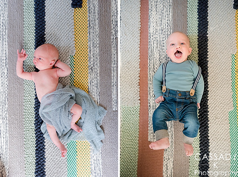 I love the rug that Kate + Jordan picked out for Max’s nursery and I love this side-by-side comparison from his two shoots. He’s such a happy baby!