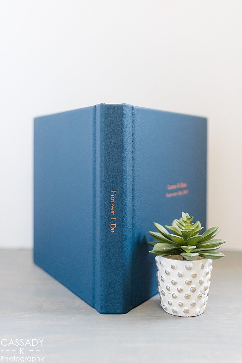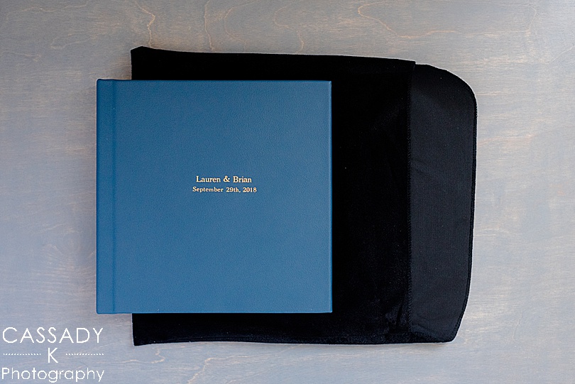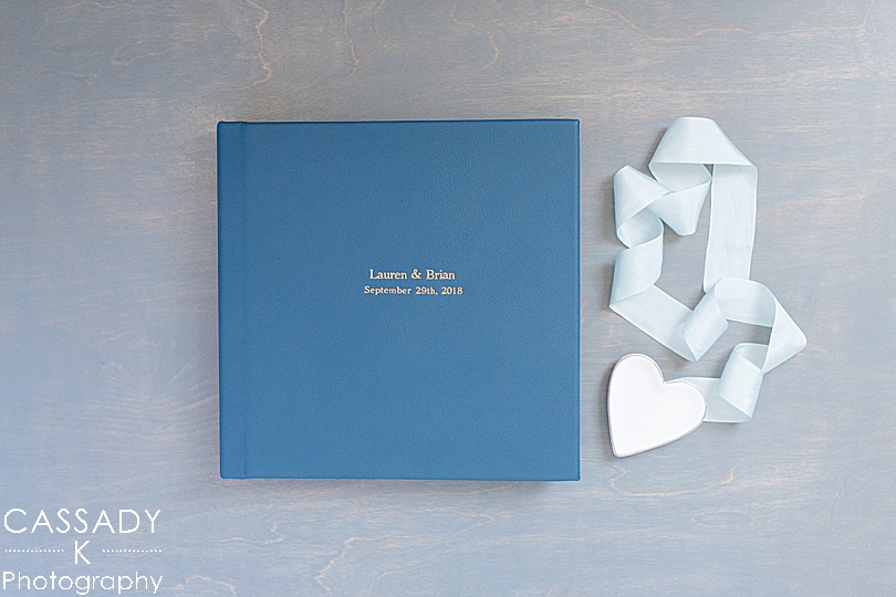 Lauren + Brian chose to get hand stamped rose gold imprinting on both the front and the spine of their Dutchess Manor wedding album.