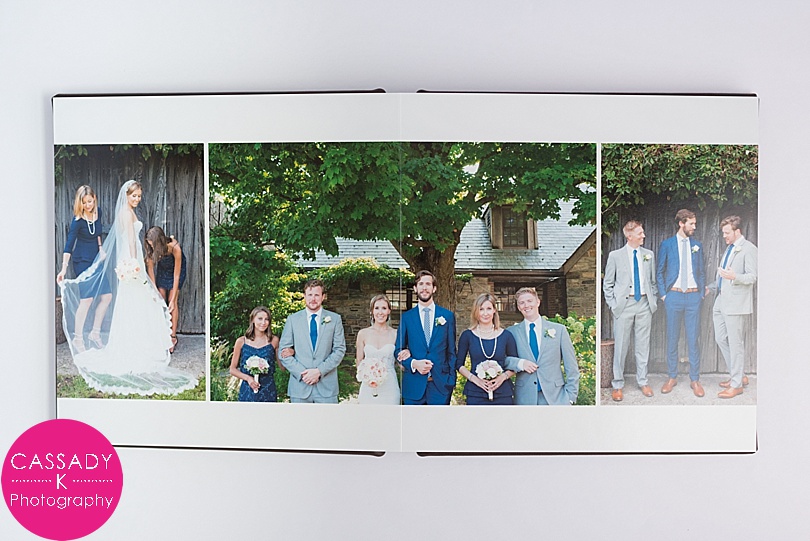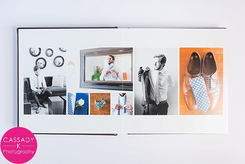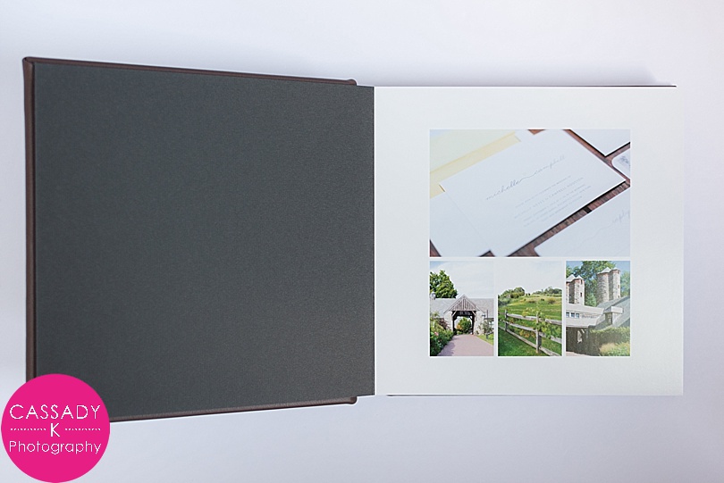 I like to design my albums so they tell the story of the wedding day. I like to start off by setting the place of the wedding with the invitation suite and some images that set the day.