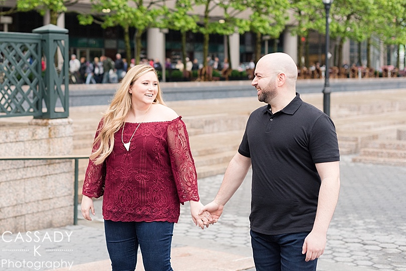 Jordana + Dave met while they were both living in New York City so it seemed only fitting to shoot their engagement session there. We actually shot right near where Jordana used to live which worked out really well that she knew the area since rain was in the forecast. She choose the perfect location for both indoor and outdoor shots for their Brookfield Place engagement session.