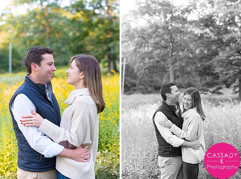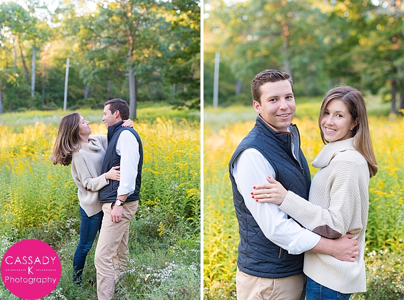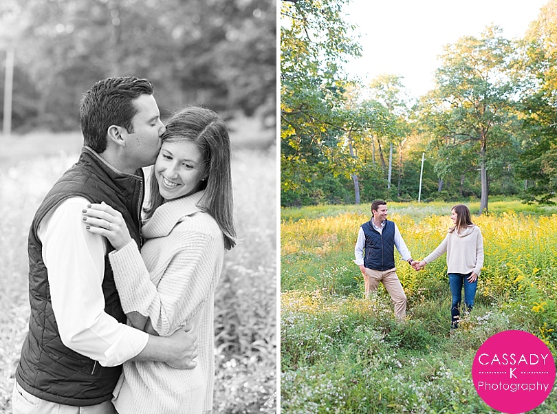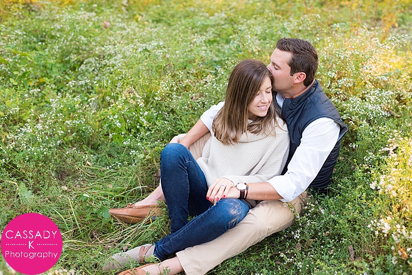 So Kaitlynn + Tommy are pretty much the best ever and were willing to not only go into a field of weeds for pictures, but were willing to sit in it! I kept telling them that I promised it would be worth it because the light was so pretty.
