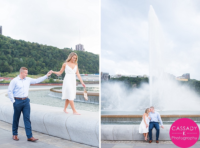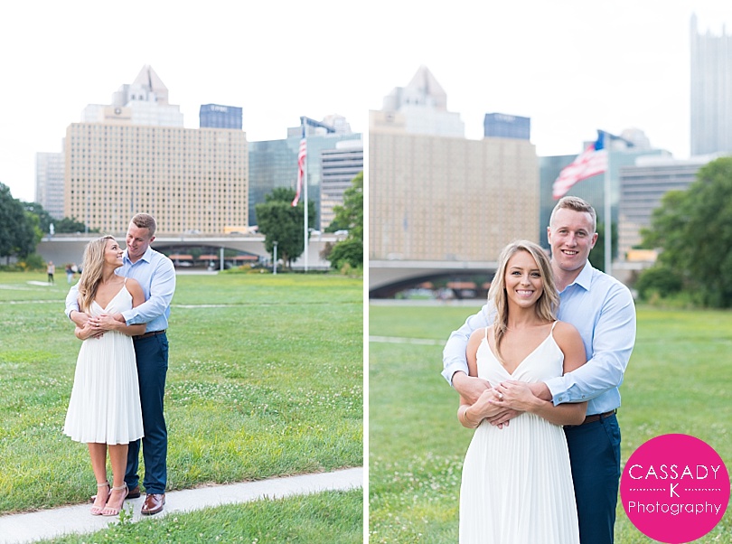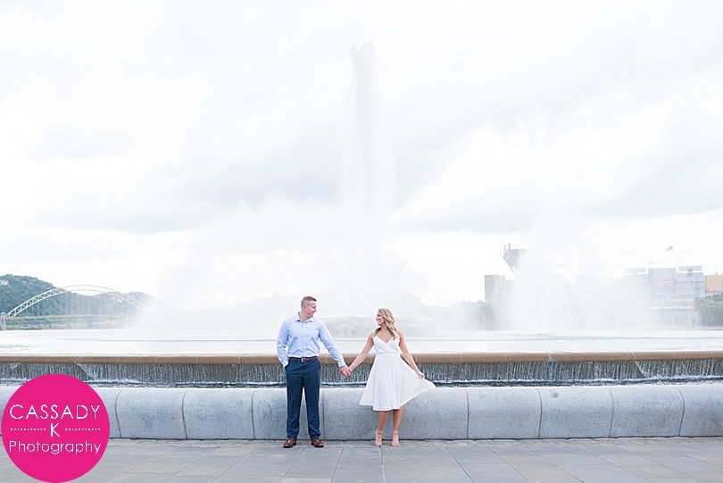 Phil proposed to Kristina at Point State Park so we went there first. Plus it’s a great spot because you can get the stadiums, bridges and fountain in the background.