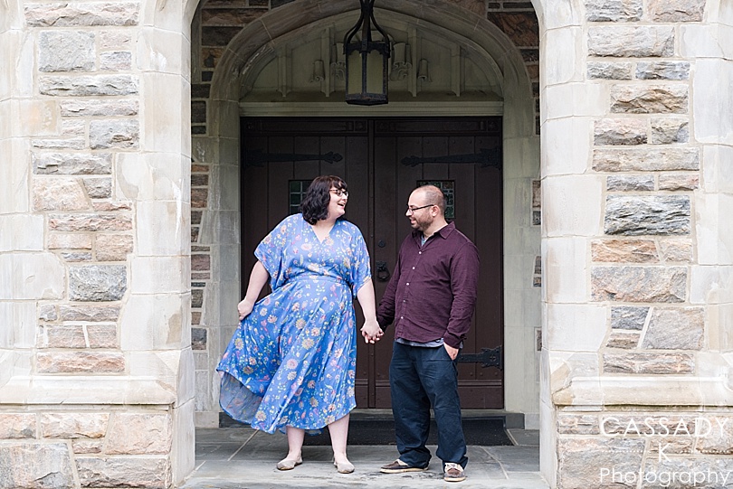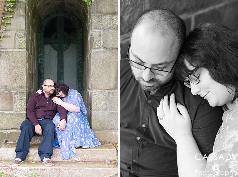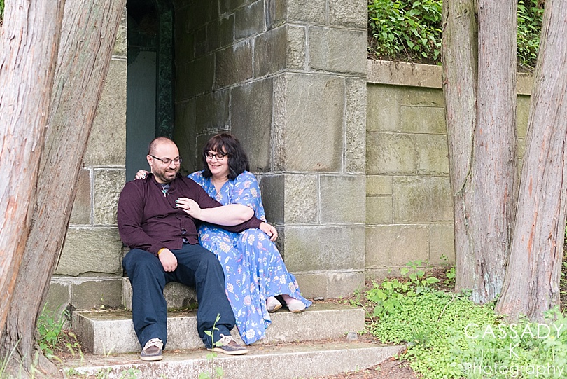 Sara + Anthony were so easy going as we made plans for their engagement session. We had to change our original plan because it was supposed to rain all day and we wanted an option for a place that was covered. The rain actually held off the entire of their engagement session, but I still loved this covered area for their Sleepy Hollow engagement session. Plus their wedding reception is at a castle so this was kind of fitting.