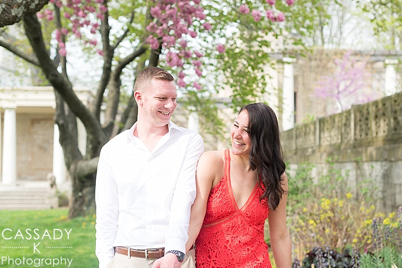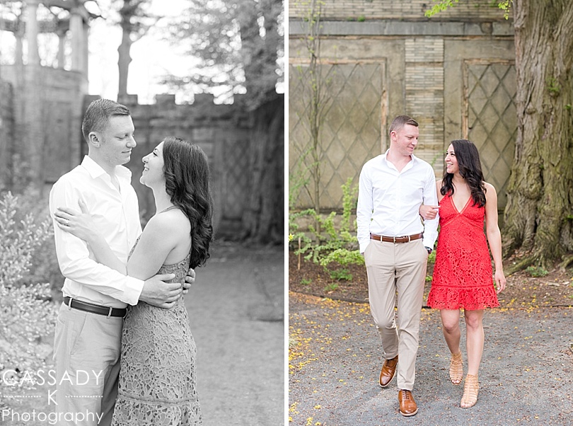 Oh these two. When Adrianna and I were exchanging emails she added that they were awkward in photos. Well I’m sorry, but I just don’t believe it! I think that they’re super cute together and the fact that they’re high school sweethearts just makes them even cuter! Check out their Untermyer Gardens engagement session and you be the judge.