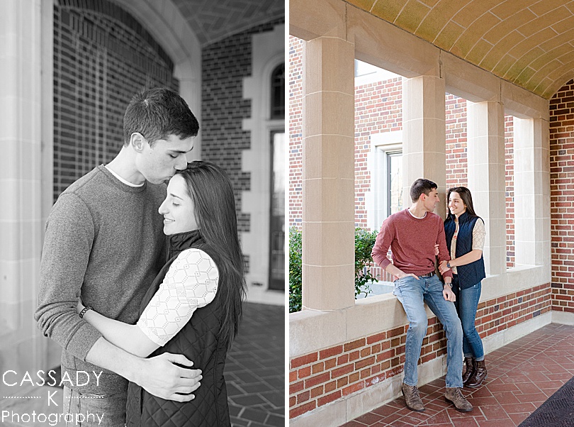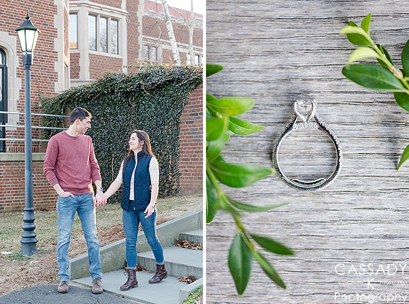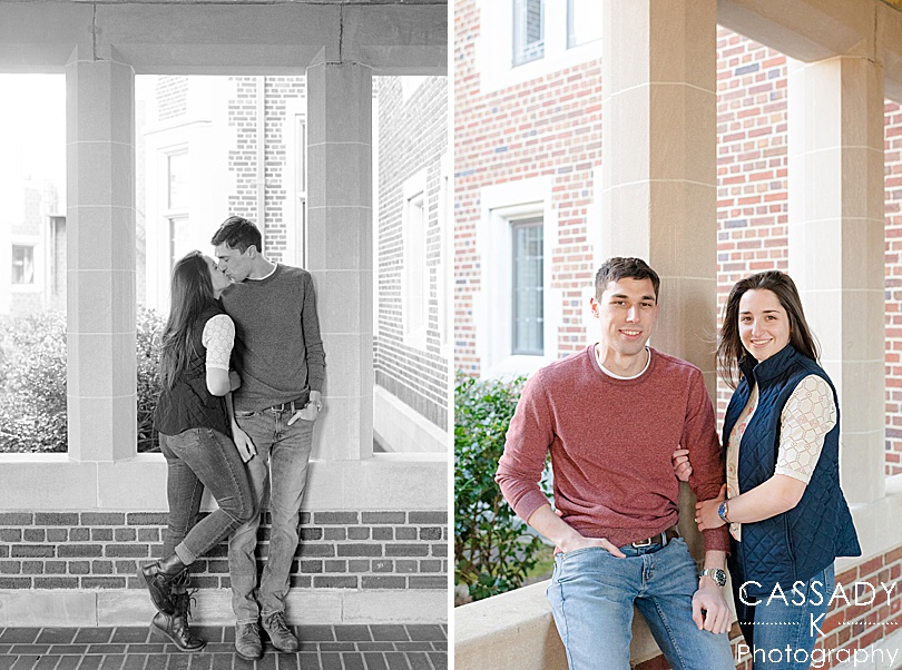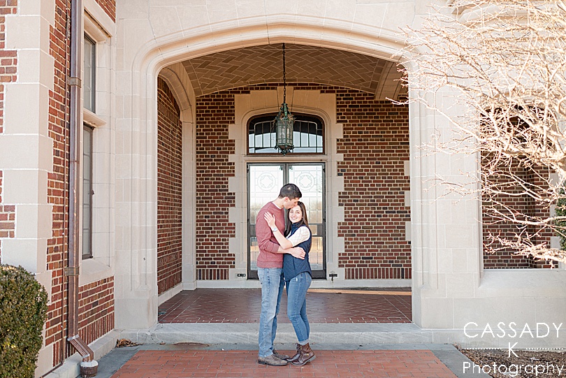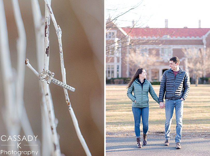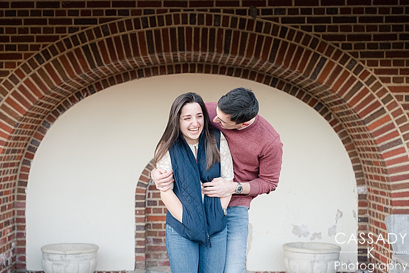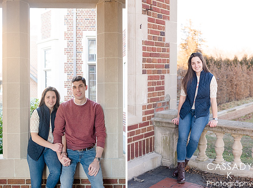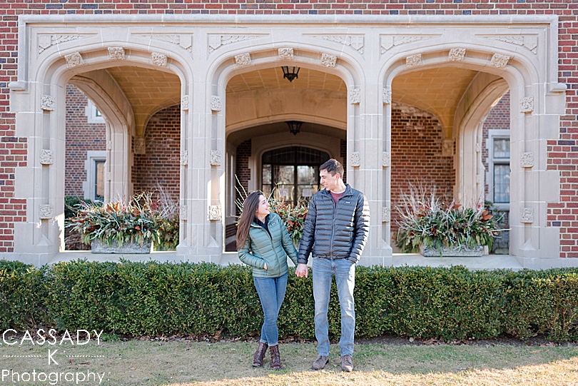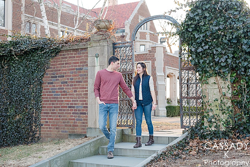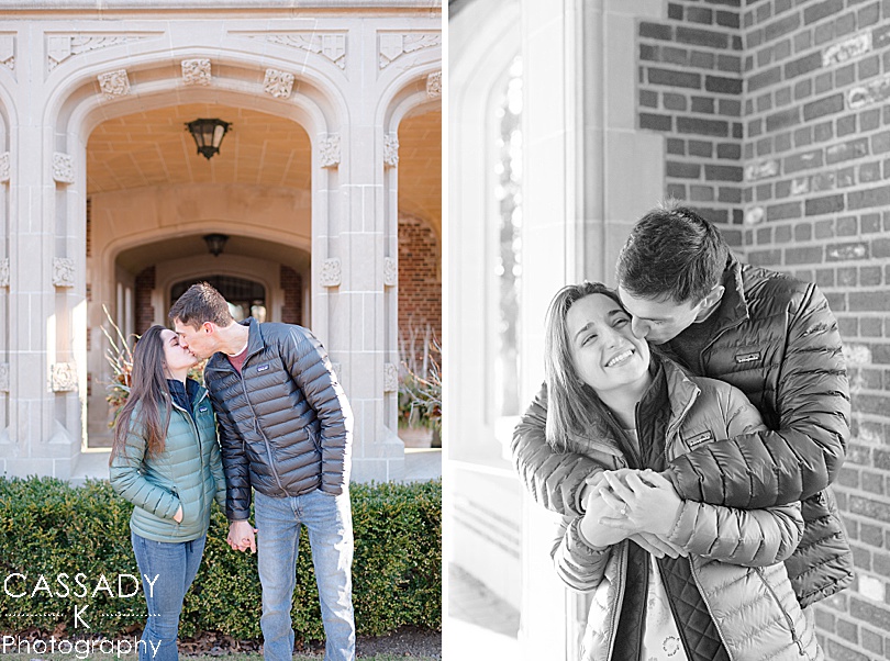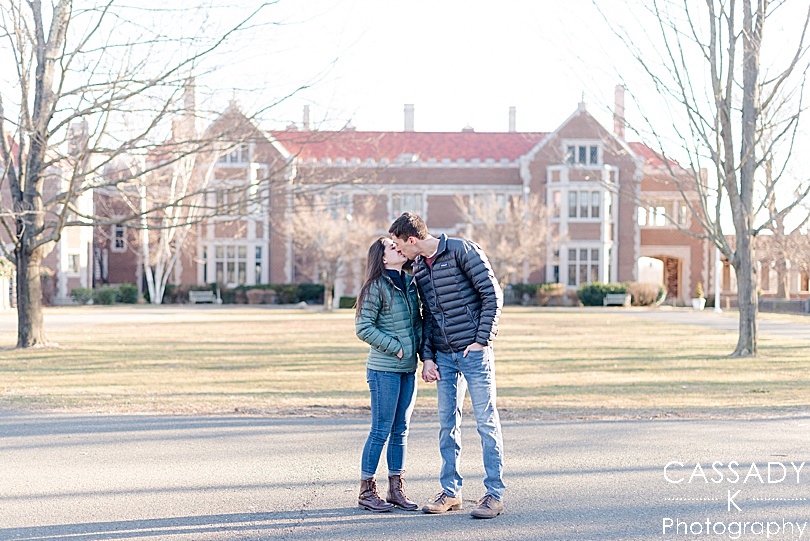 When we were trying to decide where to shoot their engagement session, Alyssa mentioned that they pictured a big brick or stone mansion as the background for their pictures. When I found Waveny House in New Canaan, CT I knew it would be perfect! Alyssa + James loved mansion and the red brick added in some color to an otherwise kind of bland time of year.