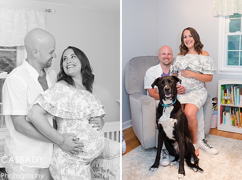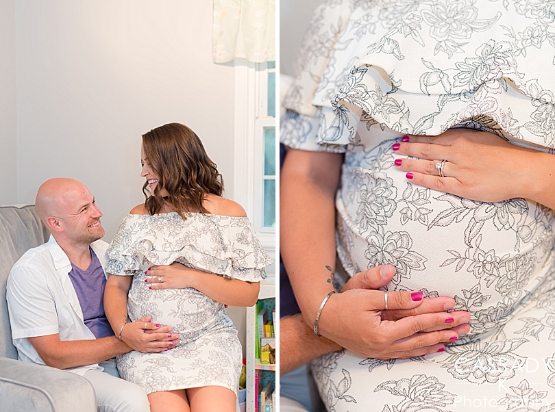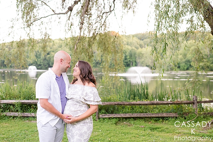 Last week I visited Debbie + PJ at their house for an at home Carmel, New York maternity session. Their house was the perfect spot to shoot since they just had their shower and have put their nursery together. It also just so happens that their house is just a short walk from a beautiful lake.
