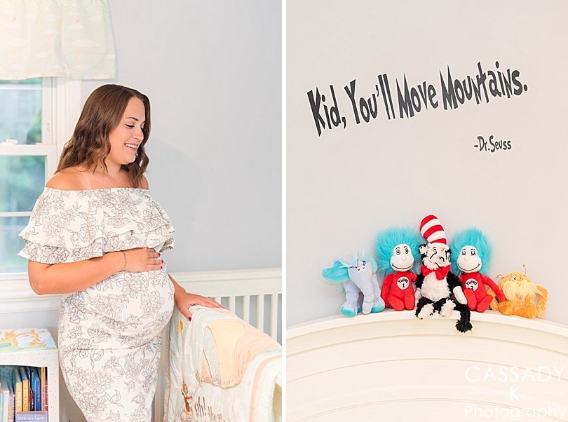PJ taught Kindergarten for years and became a big fan of Dr. Seuss so it was the perfect theme for their little girl’s nursery! The sign above the changing table was actually painted by family for their shower, but they loved it so much they included it in the nursery.