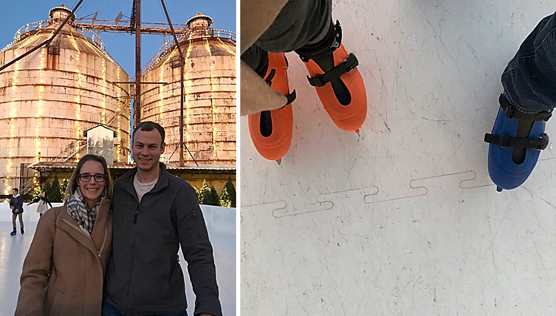 When I was doing research about the Christmas at The Silos I saw that they had an ice rink on the lawn for the event. I paid ahead of time for us to ice skate, not reading all the details that it was essentially plastic that you “ice skate” on. I’ve only ever lived in the north, I didn’t even know these types of rinks existed.
