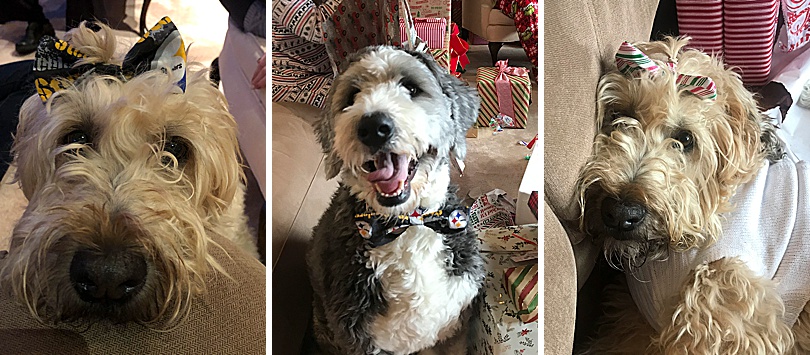I made Shuggy hair bows and Finny bowties that snap onto his collar. I made them for the different holidays and of course Steelers.