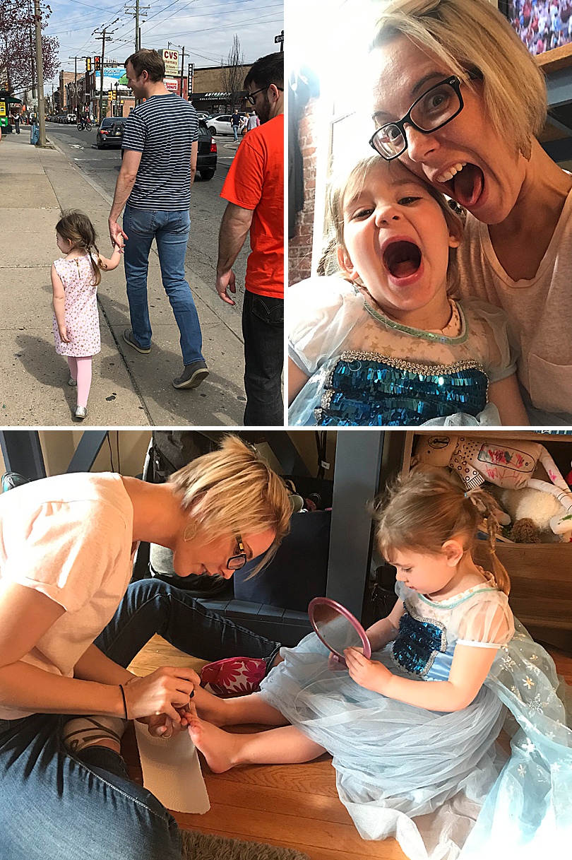 My best friend, Jess, and her family moved back from Philly to Pittsburgh this year so we went to see them one more time before they moved. Lucy is obsessed with princesses so we did a princess makeover with makeup and nail polish 🙂