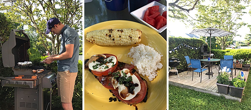 I love our outdoor space so much!! I love our garden, my flowers, Ben’s grilling, our fire pit and having people over to enjoy it with us. Ben’s parents came to visit us for the day so we made them this yummy meal… Ben did most of the cooking.