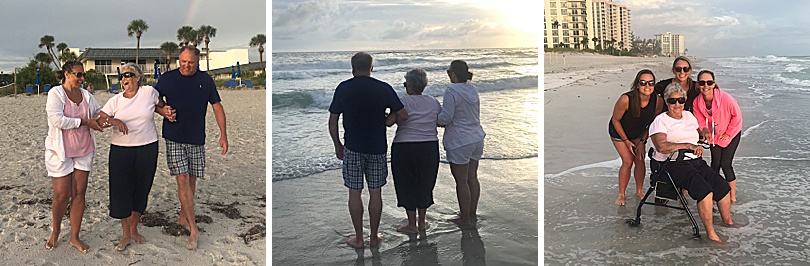 On our vacation with our extended family we got my Grammy Bear down to the ocean so she could put her feet in the water.