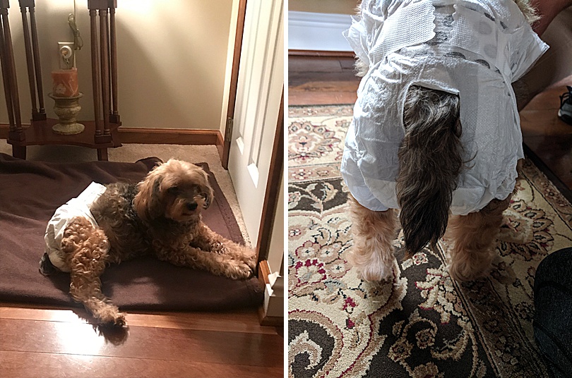 I forget what month Sophie was diagnosed with kidney failure, but in July she started wearing diapers at night (later on it became all the time) because she couldn’t control her bladder. As sad as it was to see her in the diapers, it was also freaking adorable to see her little tail come out through the hole.