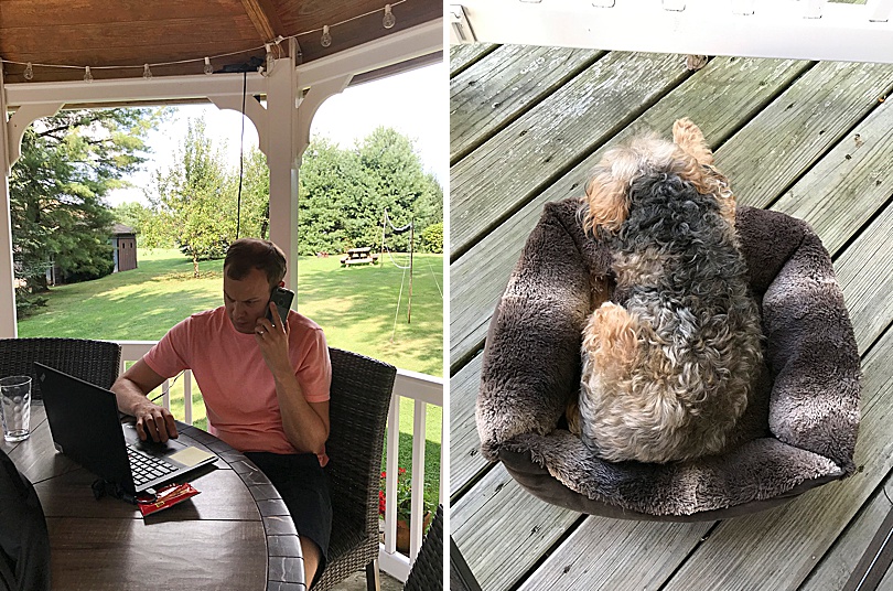 In August Ben’s grandfather turned 95, we went out for his party, but stayed at my parents for a couple of days. We went out Thursday night so then Ben could work remotely on Friday. He had quite the setup outside and even got Sophie to hang out with him.