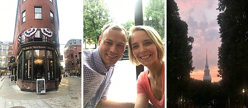 Then at night we’d go out. The Bell in Hand Tavern is one of my favorite places for dinner. It’s so cute because it’s such a skinny building and I love sitting in the window section. I love the Old North Church and we caught it against a gorgeous sherbert sky.