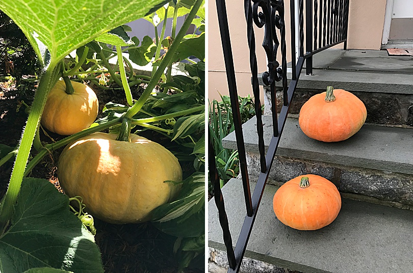 I’m very proud of these pumpkins! My Grr gave me pumpkin seeds and I planted one behind our bushes just to see what it would do. I’ve heard they can be very finicky. Well this plant took off and we even had to stop it from climbing into our neighbor’s vent and up the back of the bushes.