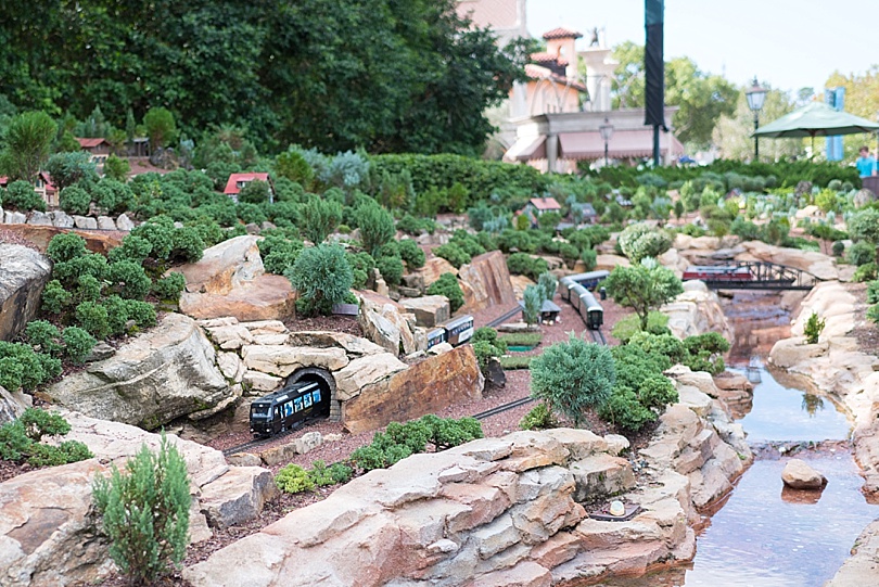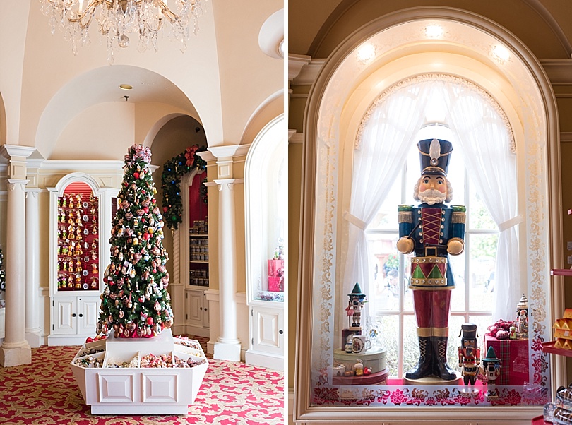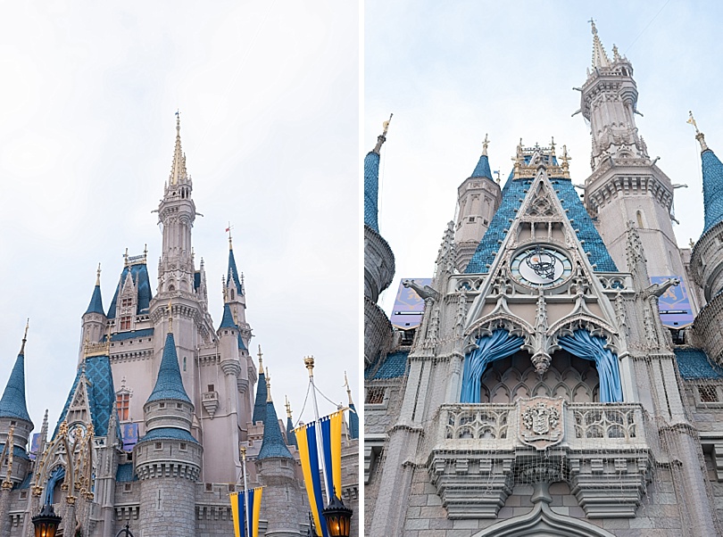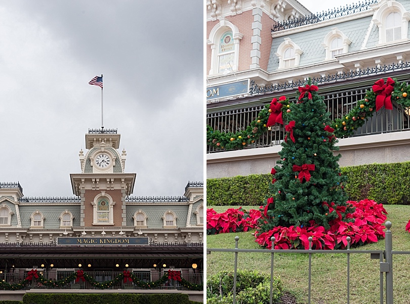 I feel like this is a secret little spot that’s perfect for pictures! It’s right when you enter the park at the top of the stairs for the train platform. I love that you can get the tree and Cinderella’s Castle in the background. When it’s the regular season you can stand right in the middle of the station and get the castle right behind you.