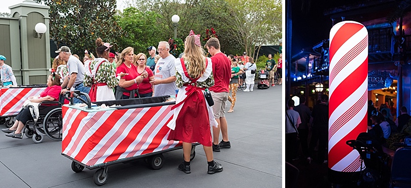 At Mickey’s Very Merry Christmas Party they hand out free snacks all over the park. The big candy cane meant a holiday treat!