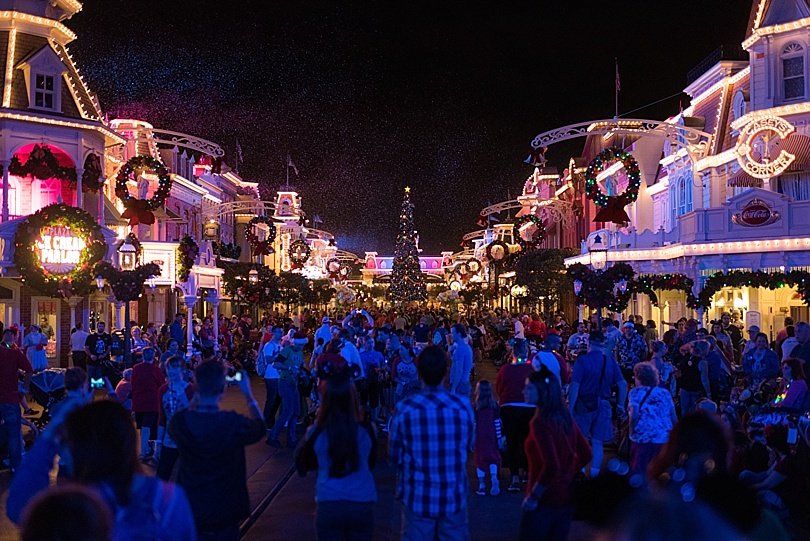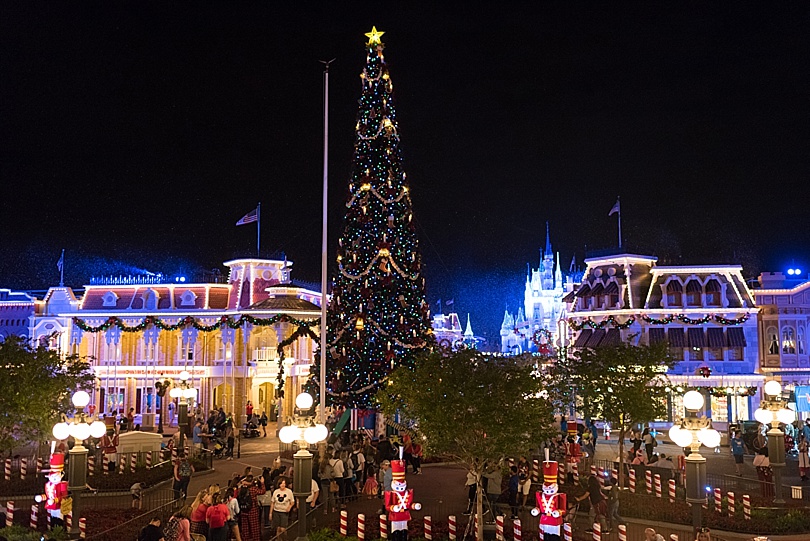 The Magic Kingdom felt extra special with the lights on and the “snow”.