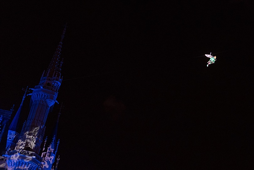 I want to play Tinker Bell! She flies down a zip line to start the Holiday Wishes fireworks. That must be such a neat view!