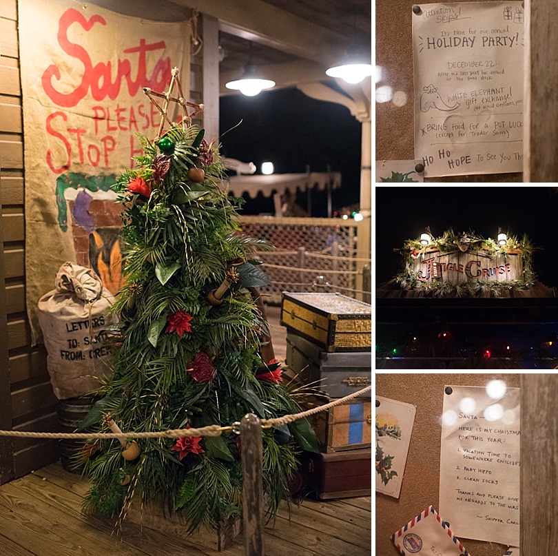 The rides are open during the party and the Jungle Cruise becomes the “Jingle Cruise” and has a some Christmas decor.