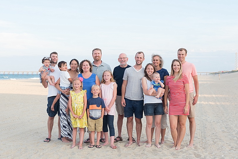 I think just about every family takes family pictures whenever they’re on vacation because everyone’s together, tan and the beach is just so pretty. While we were on our family trip to the Outer Banks with Ben’s family I brought my tripod so that after dinner one night we could all head over to the beach for some pictures. I think our picture came out pretty good for trying to get little ones to look at a tripod.