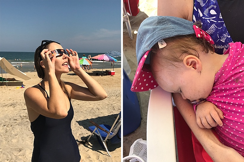We watched the eclipse on the beach thanks to my sister-in-law who bought the glasses.