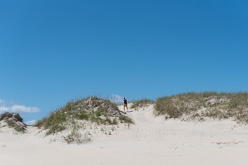 Ben climbing the sand dunes on Corolla Beach.