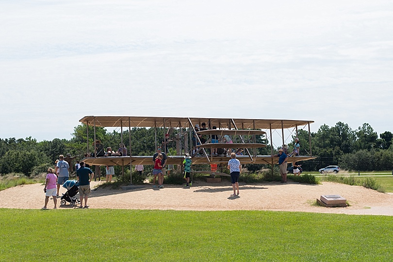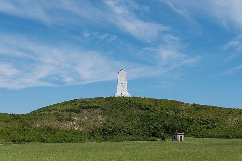 The memorial at the top of the hill was where the Wright Brothers first did their hang gliding experiments.