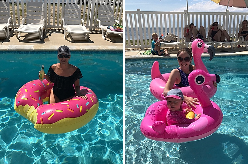Laura had matching flamingo pool floats for her and Hailey.