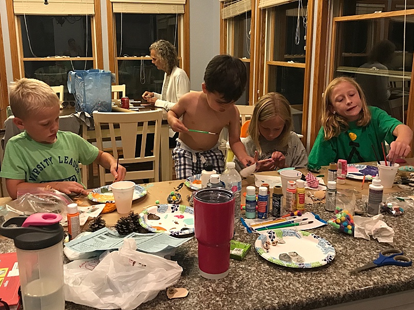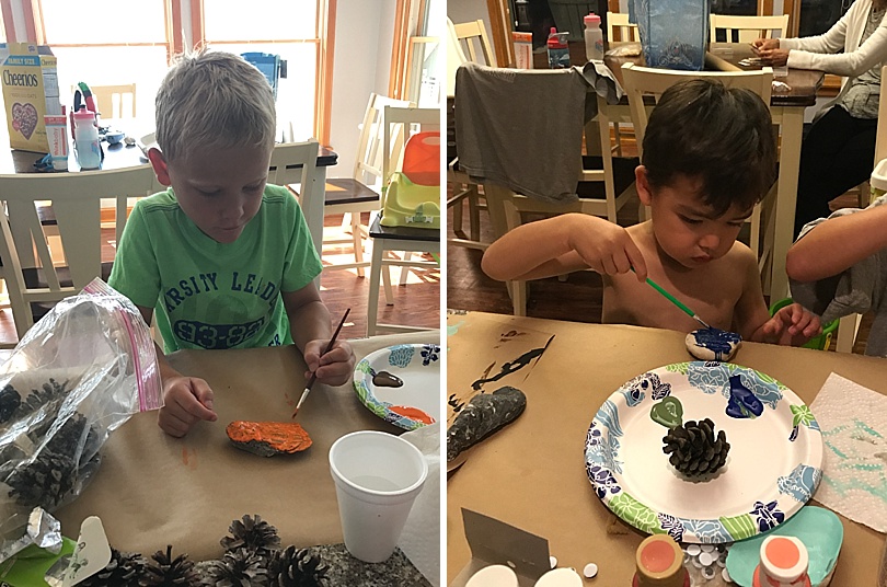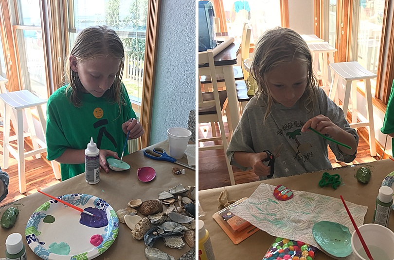 When my family used to go on trips with my dad’s side of the family my grandma would bring all kinds of art supplies and paint. My grandpa and us kids would collect seashells, rocks, driftwood and feathers so we could make all kinds of creations. I thought it would be fun to do the same with my nieces and nephews.