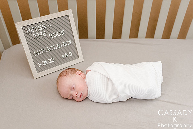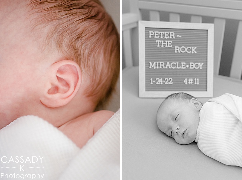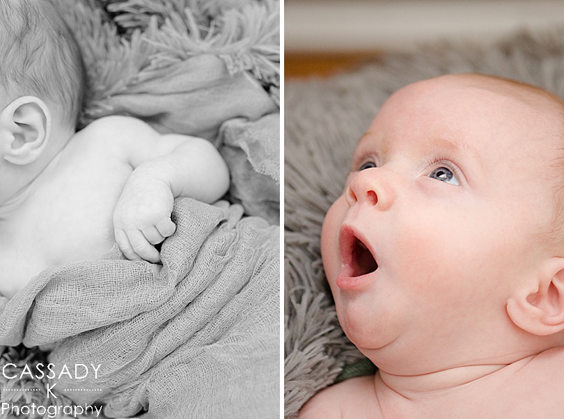 Newborns don’t have much of a schedule so the goal is really just to keep them fed and warm and they’ll usually sleep or be drowsy through most of the session. Allowing time for the babies to calm down or fall asleep is one of the hardest parts for parents, but one of the most important. I always have other tools and ideas up my sleeve that I use to keep babies as calm as possible, and I’ve become quite good at swaddling. 🙂