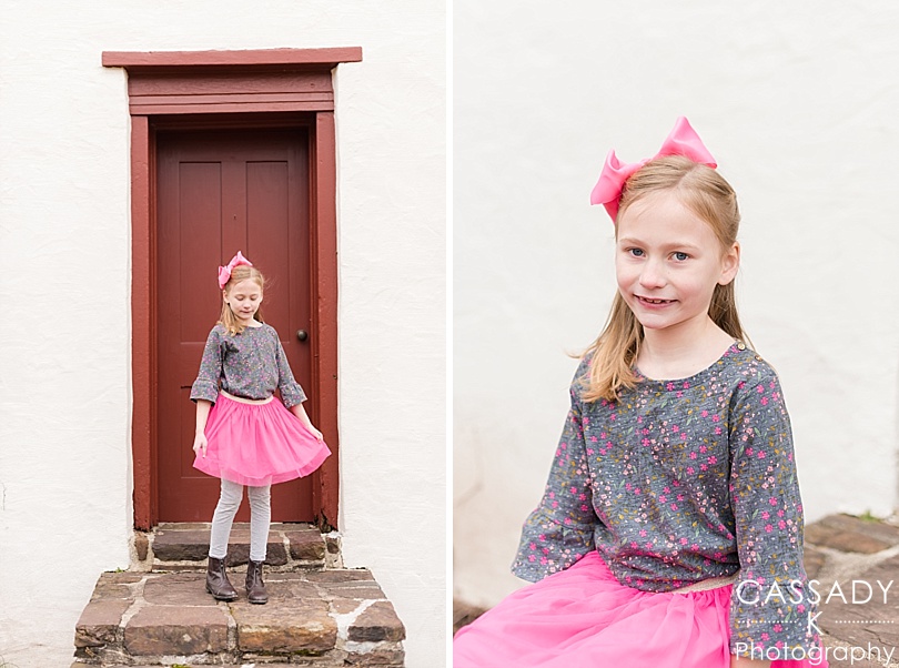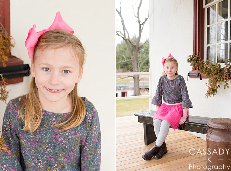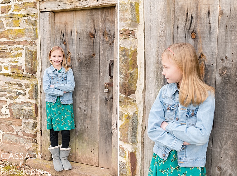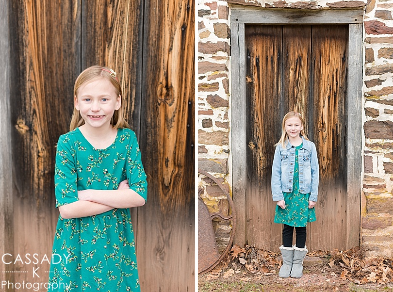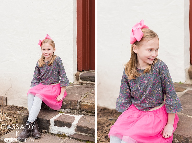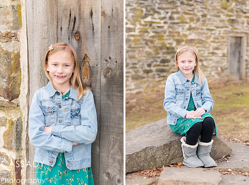Can you tell she’s a little cold on the right? The wind was blowing around like crazy! We literally shot all of these pictures in like 15 minutes and put her coat on while we were walking to different spots (I actually carried her around a good amount because it was so muddy and I had on rain boots.).