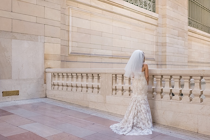 I really love all of these portraits in Grand Central. Everyone is hustling and bustling around the Bride and Groom who are just enjoying the moment.