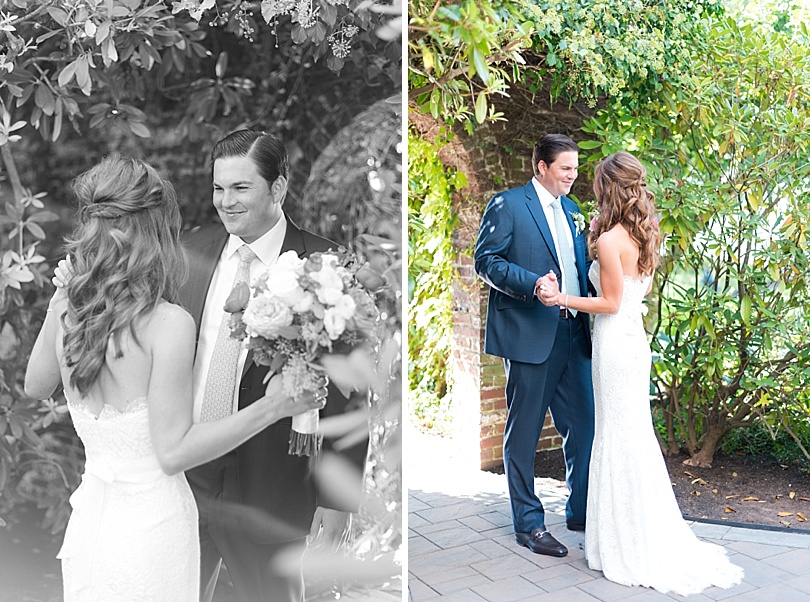 The Bride + Groom did a first look in what felt like a secret little garden.