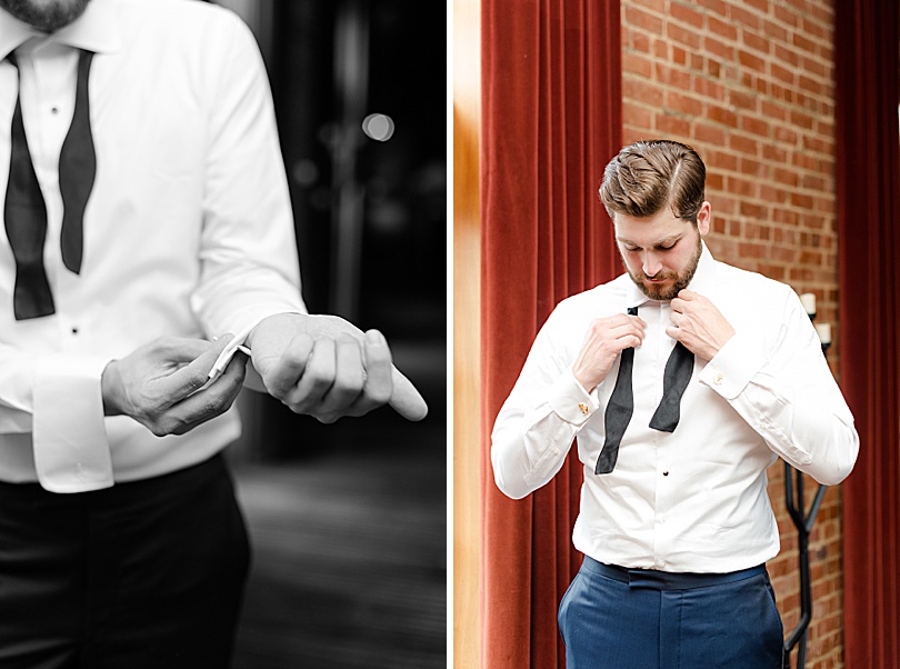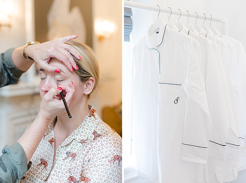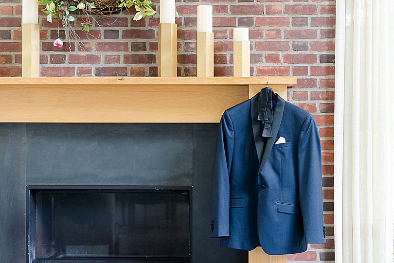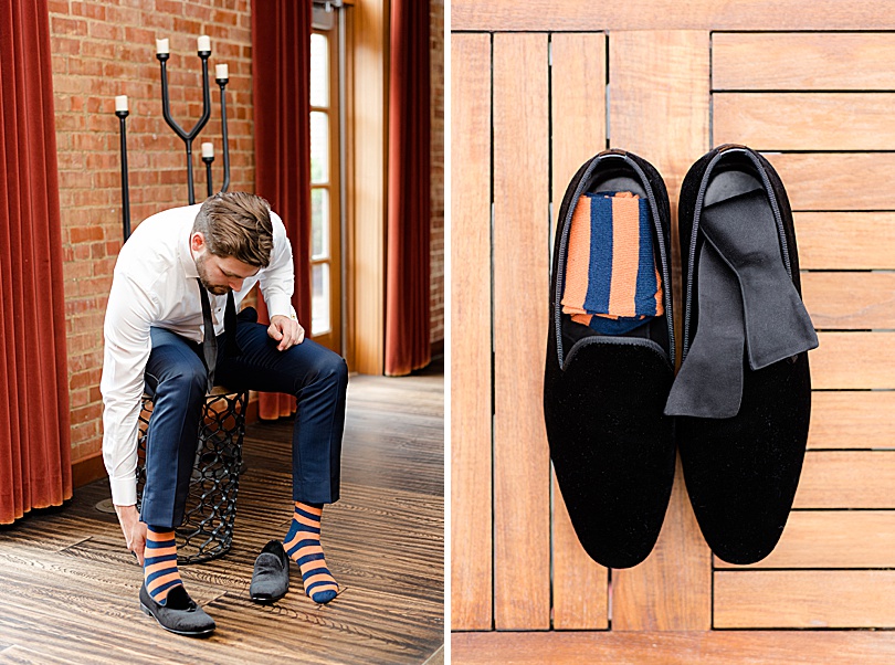 Since I was the second photographer I met up with the Groom to get pictures of him getting ready at the Ninety Acres restaurant. It’s just over the hill from the Natirar mansion. The Groom had quite the style with a navy tux, black velvet shoes, striped socks, and anchor cufflinks.