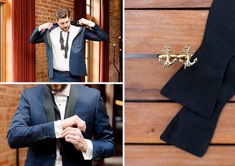 The Groom said the anchor cufflinks were a joke gift from the Bride because she said now she was going to be his anchor so he could never get away. hahaha I still liked them, but I also really like anchors. 🙂