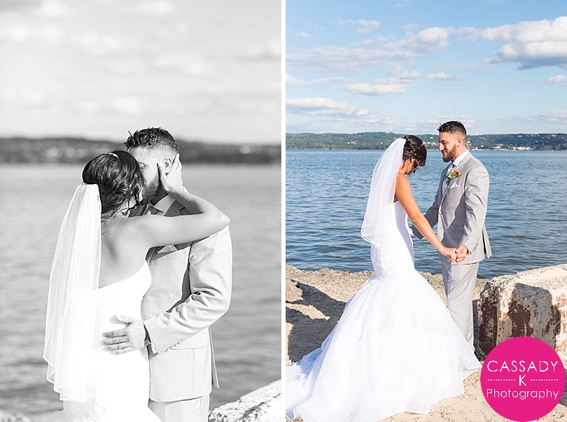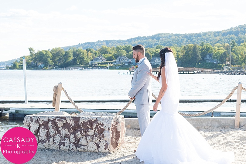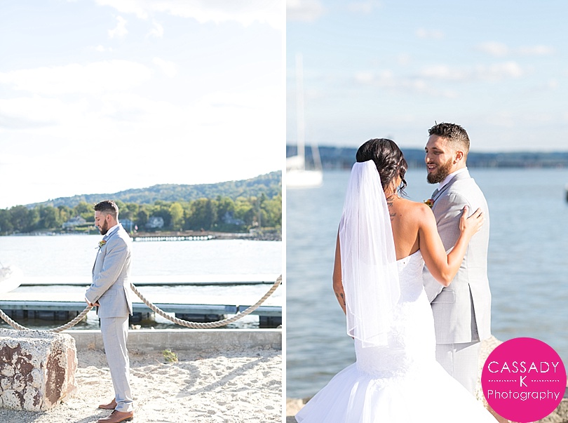 Ashley + Greg did their first look right by the water.