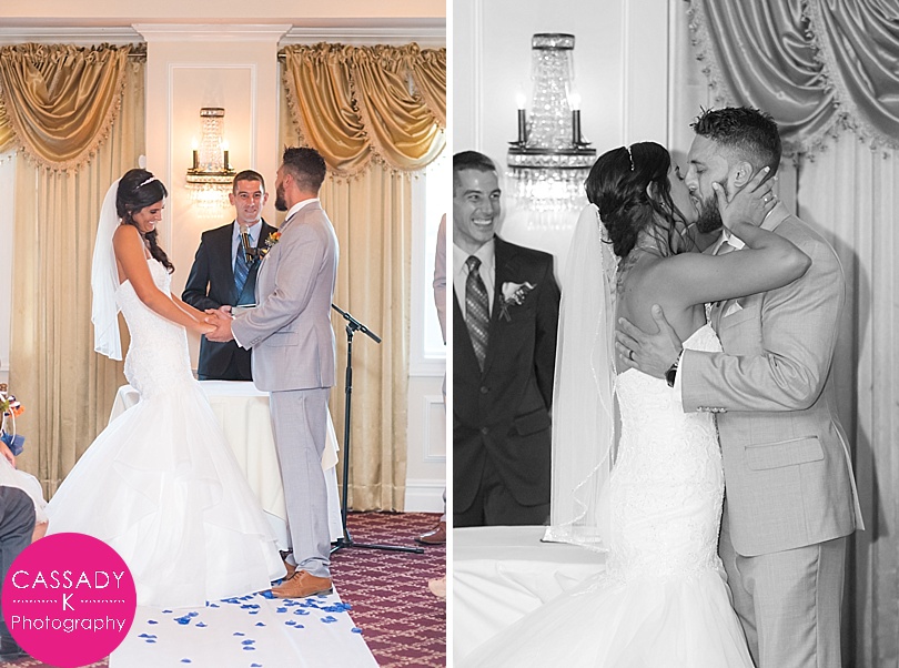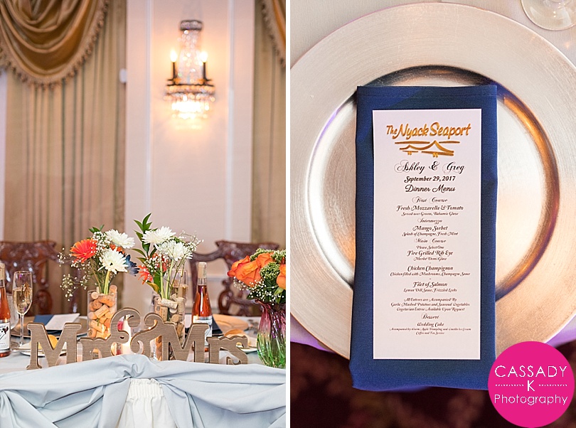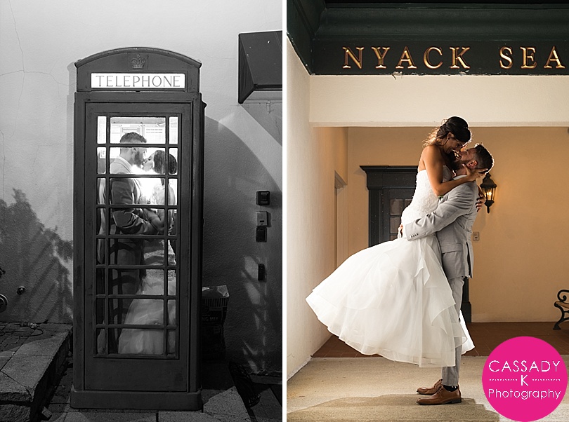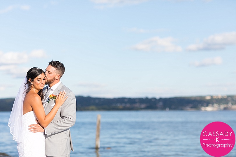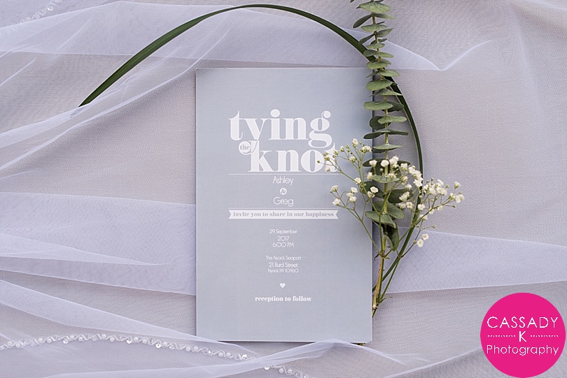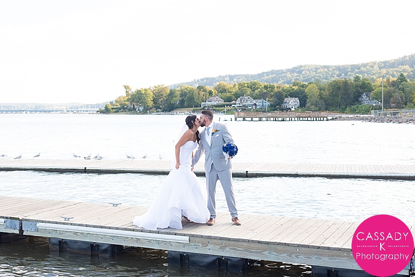 Ashley + Greg met in Florida , but found out they were actually both from from New York. And only 45 minutes apart in New York! They were married right by the Hudson River at a Nyack Seaport wedding. Which was pretty fitting since Greg proposed to Ashley right along the water on the beach in Florida.