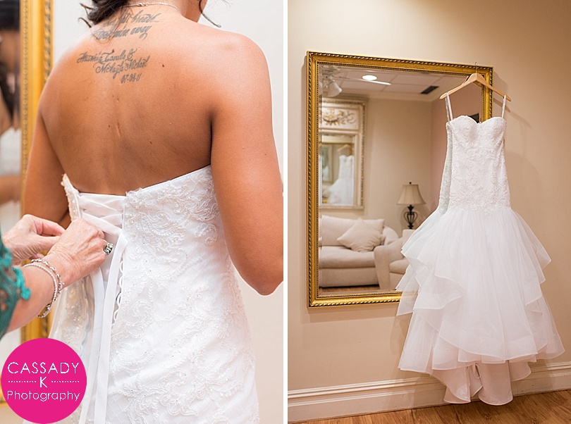 Ashley’s mom and sister helped her into her dress.