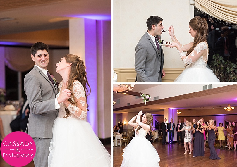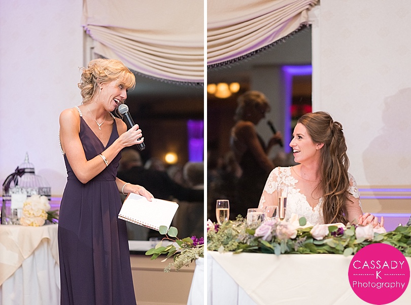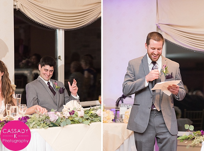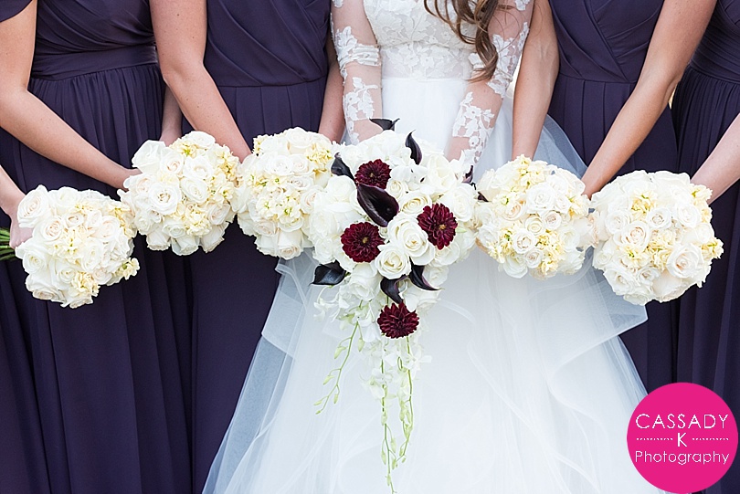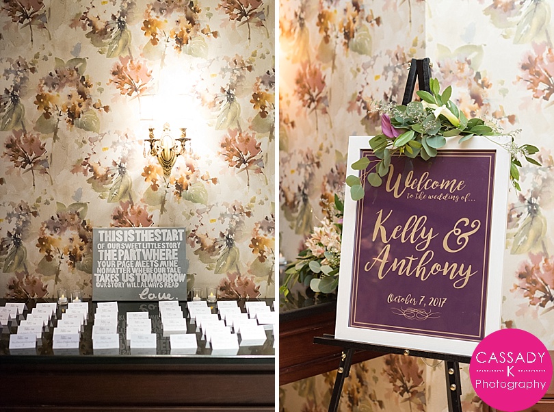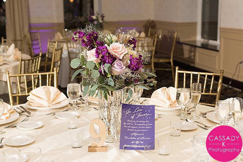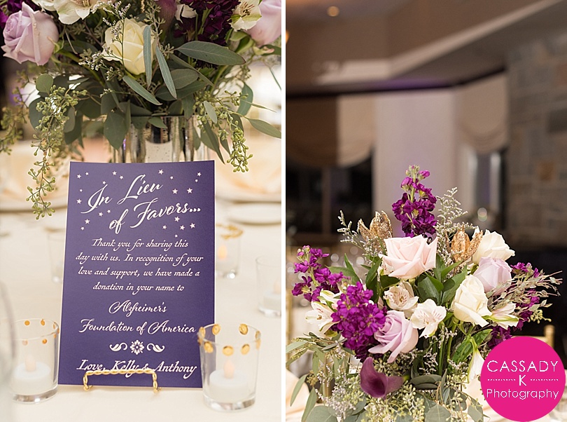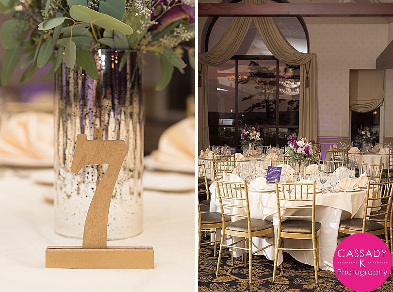 Kelly + Anthony worked so many plum, gold and ivory details into their Patriot Hills Golf Course wedding reception.