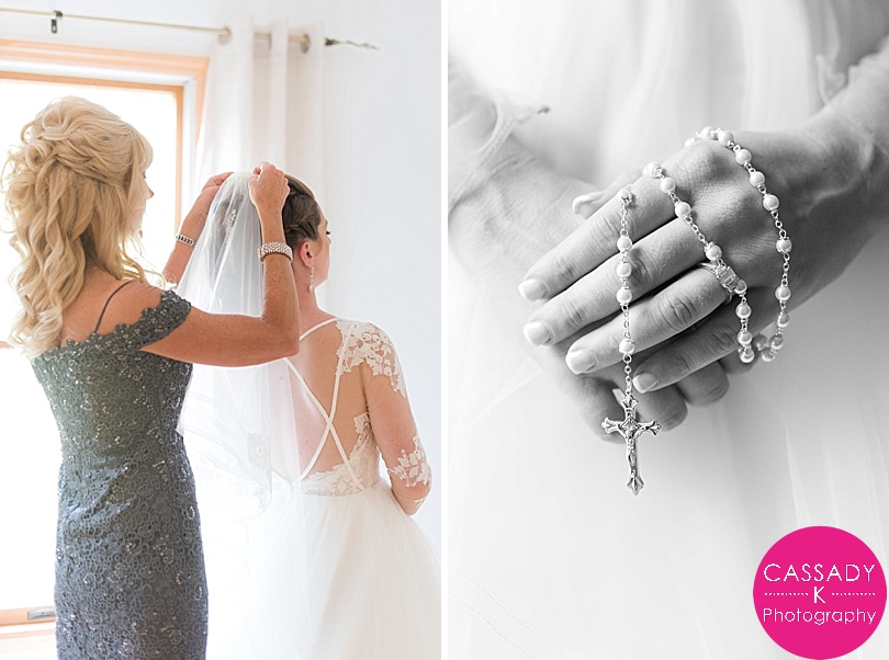 Kelly’s parents’ living room was the perfect place with plenty of space and beautiful light for Kelly to get ready.