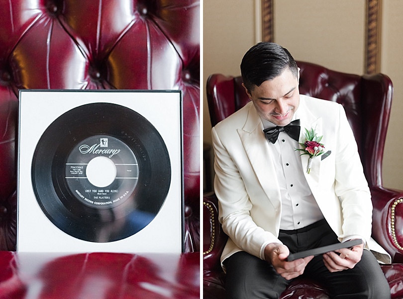 The bride gave the groom a record of their first dance song as his wedding gift.