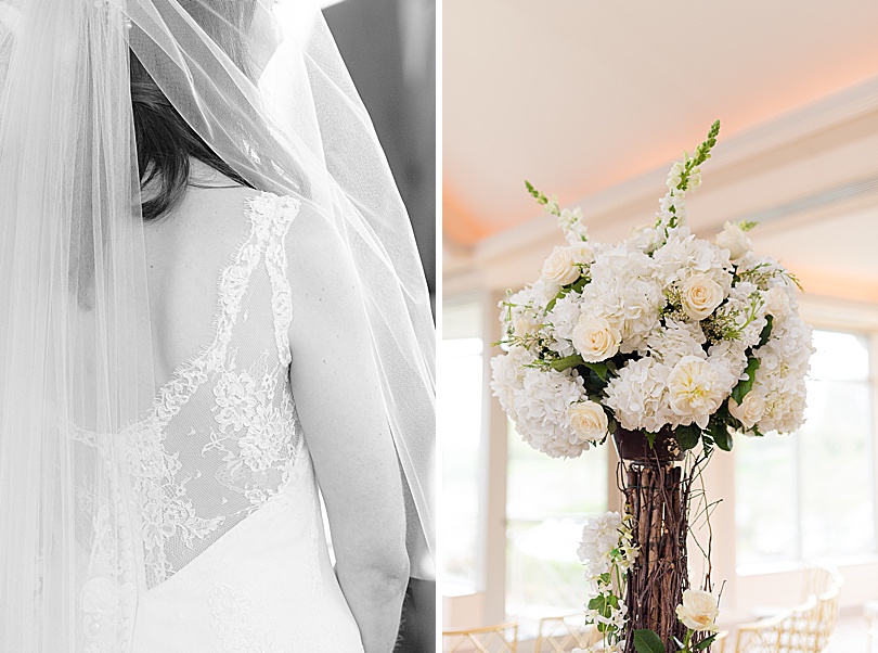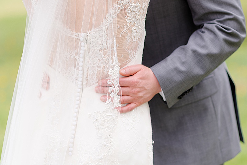 Details of the back of bride's lace dress during a Jewish Spring Glen Island Wedding in New Rochelle, NYThis Spring Glen Island wedding is the perfect example of the exact time of year I love to begin photographing again, early May. I love the initial start of spring when everything gets the first hint of green and flower buds begin to emerge on flowering trees. It amazes me every year how the ground can be completely frozen, everything looking like it’s completely dead. Yet as soon as there’s even a day or two of warm weather, it awakens something in the earth. I think of it like when I’m riding in the car and then the warmth of sun washes over me and I get a little smile because there is nothing that can even compare to the feeling of that warmth. That’s what I picture all the trees, plants and bulbs feeling, and they smile a little and stretch a little so that their greenery pops out of the earth.