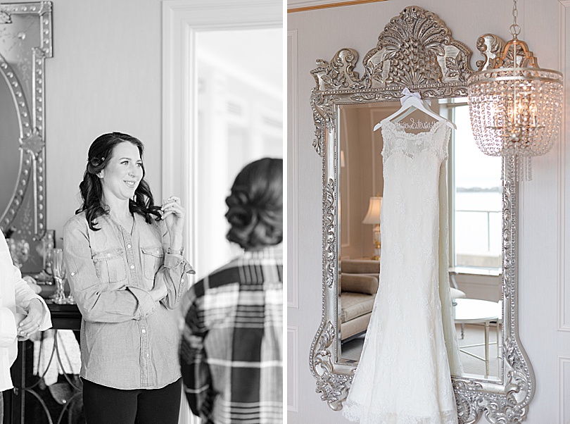 The bride's lace dress hanging on an ornate mirror for a Jewish Spring Glen Island Wedding in New Rochelle, NYI’ve had a number of brides with these sparkly Kate Spade Keds and I loved them so much that I got a pair for myself in pink!